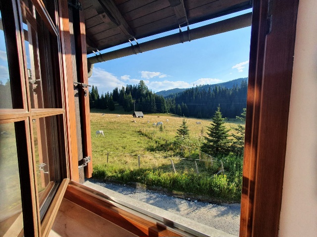 Das Kuhzimmer mit Balkon befindet sich auch im 2. Stockwerk. Wo Sie den Sonnenaufgang im Bett beobachten können.